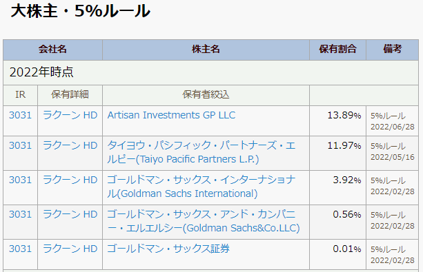 大株主の多くが投資会社という点を見ると短期トレード向きの銘柄かもしれません。